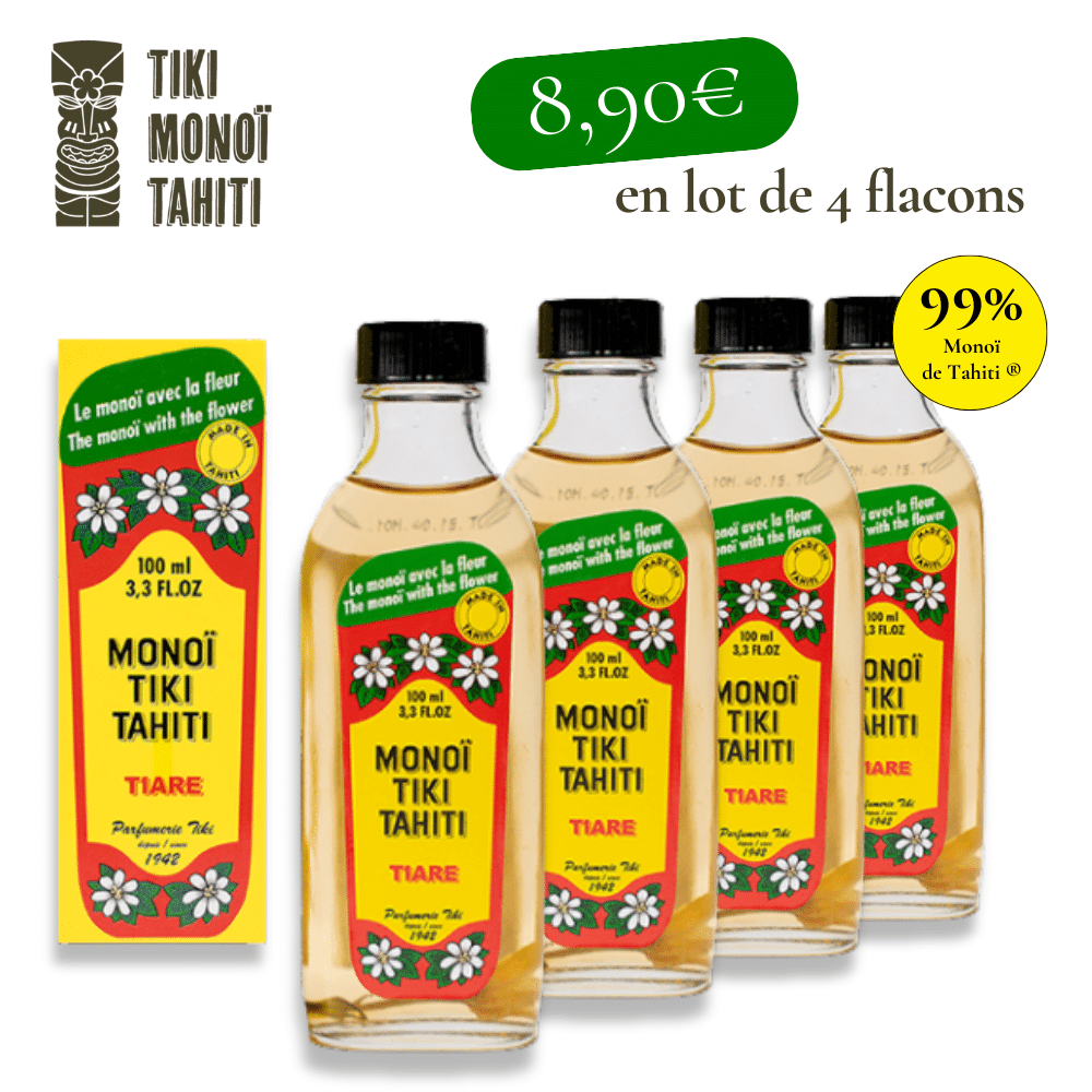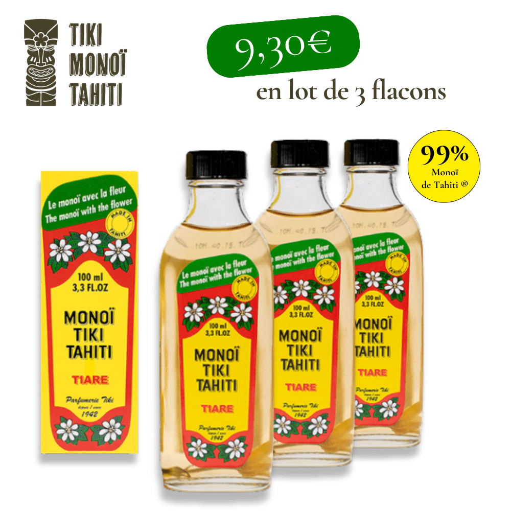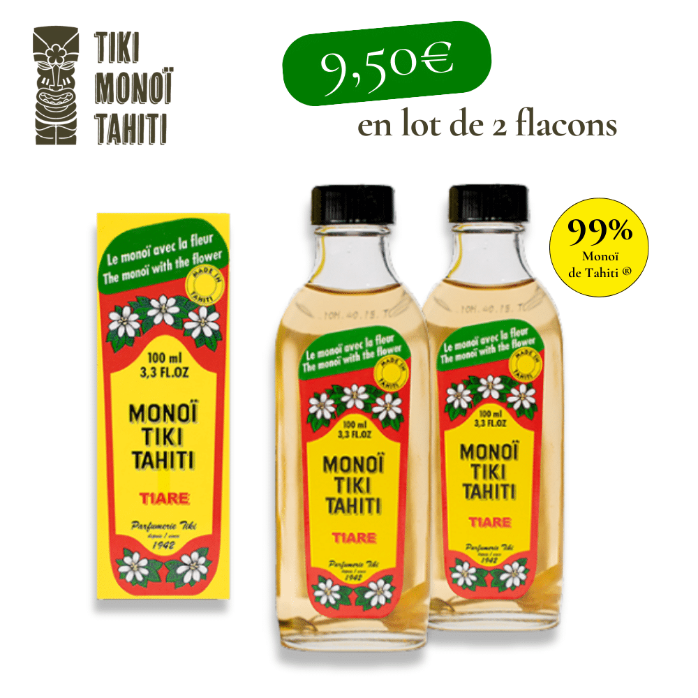 Ainsi, l’introduction de la fleur de tiaré juste avant le remplissage du flacon signe l’origine et l’authenticité de ce monoï. Le célèbre Monoï Tiki, l’original avec la fleur, dans son flacon de verre était né.